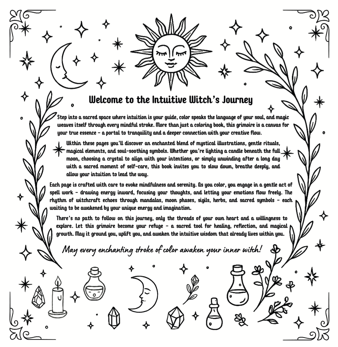 Când am început să lucrez la Grimoarul în culori al vrăjitoarei ghidate de intuiție (The Intuitive Witch’s Coloring Grimoire), nu îmi propusesem să mai adaug încă o simplă ”carte de colorat”.