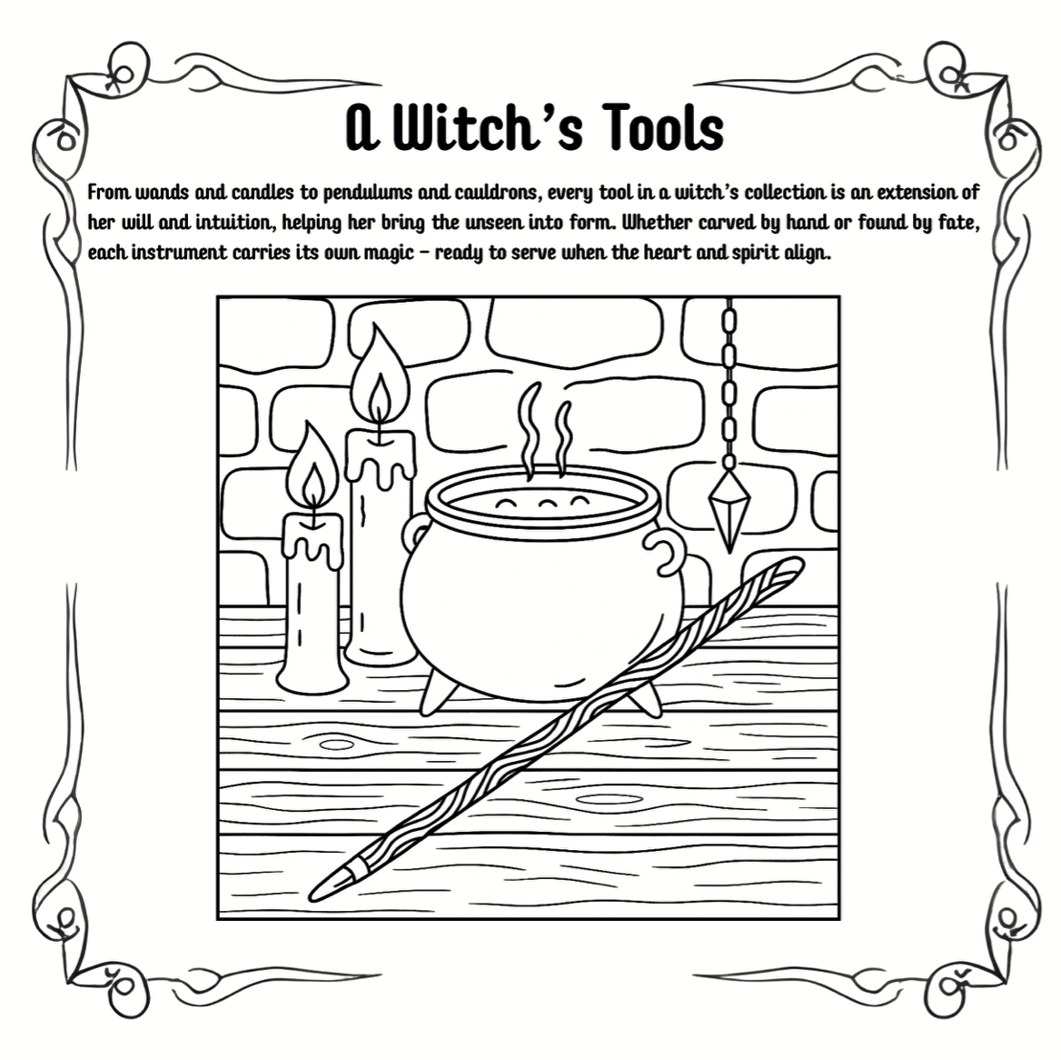 Această carte s-a născut din dragostea mea pentru simbolismul vrăjitoriei, ritualurile tăcute, cristale, plante, cicluri lunare și actul simplu și ancorant al coloratului.